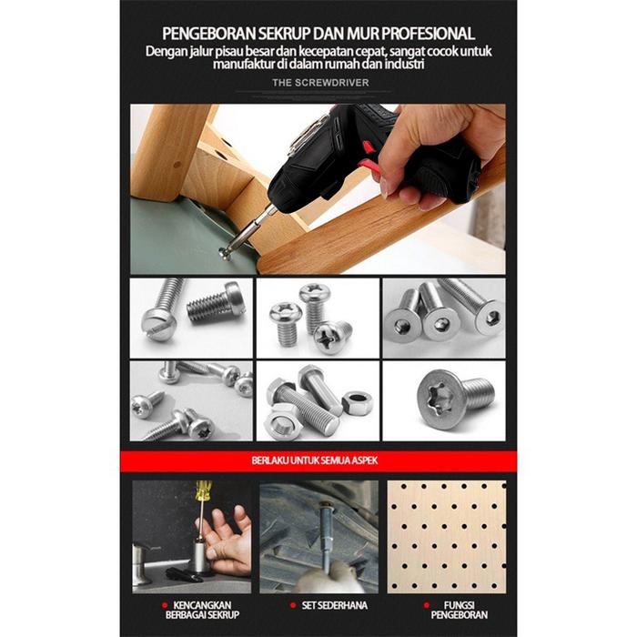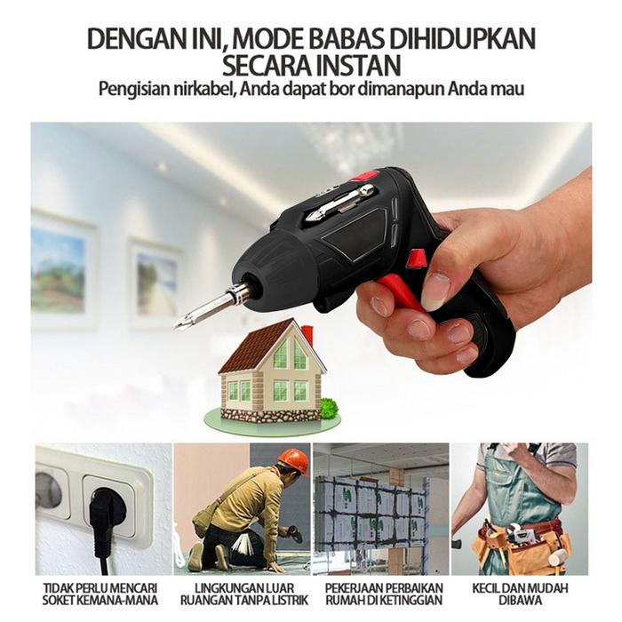 Obeng Listrik Rumah Tangga 3.6V / Bor tangan yang dapat diisi ulang,Set Lengkap Mata Bor Cordless Drill Full Set - Stand