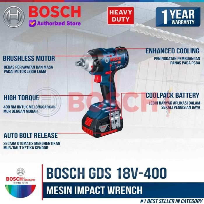 Bosch Mesin Impact Wrench Cordless GDS 18V-400 + Baterai Procore 8 AH