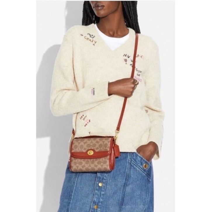 Coach C4204 Signature Kip Turnlock Crossbody Tan Rust (New With Tag)
