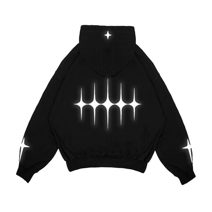 Hoodie Boxy Double Zipper Oversize Menyala Sablon Reflective Gdbng Hitam