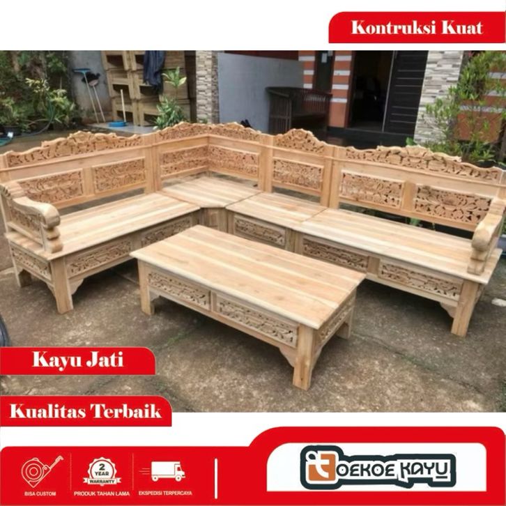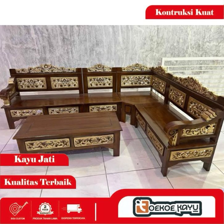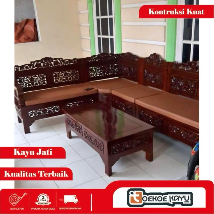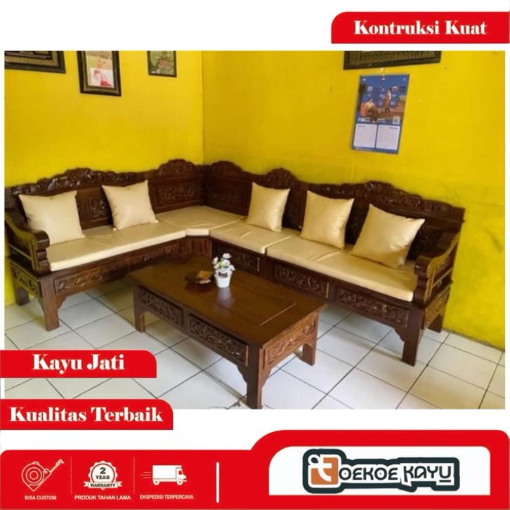 [Mall] Kursi kayu ruang tamu/kursi kayu jati/Kursi tamu sudut bagong kursi tamu kayu jati ukir jepara