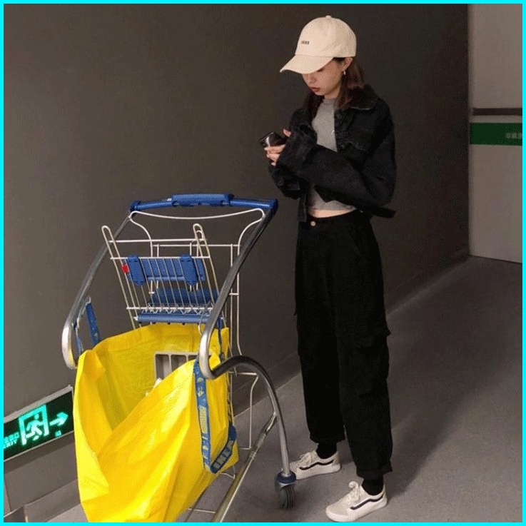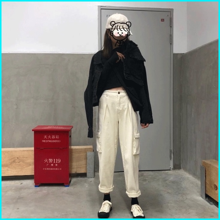 Lulu-- Highwaist Cargo Jeans Black Apricot --177 Realpict