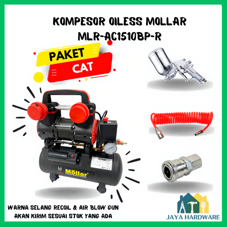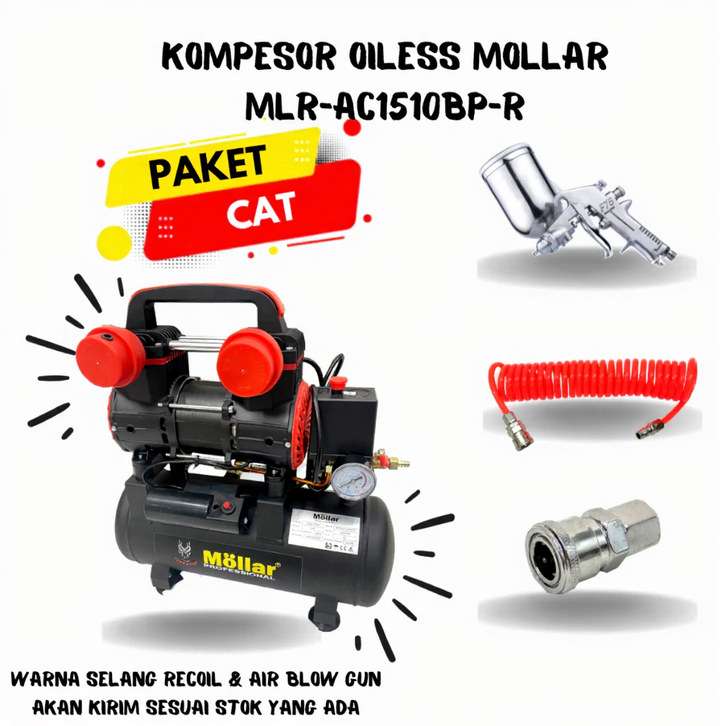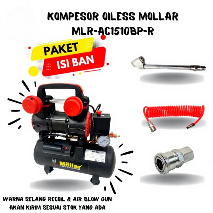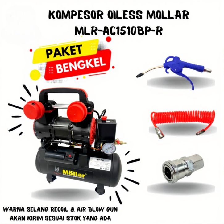 Kompresor Angin Listrik SIlent (UNIT/PAKET) 10 Liter 1HP OILESS MLR-AC1510BP-R MOLLAR / Air Compressor Udara Tanpa Oli