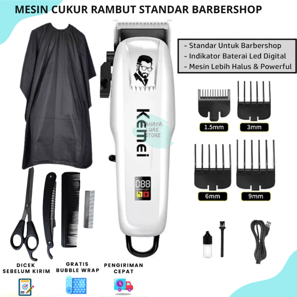 CL MESIN CUKUR RAMBUT CAS PROFESIONAL PAKET BARBERSHOP KEMEI INDIKATOR BATERAI LED DIGITAL ORIGINAL