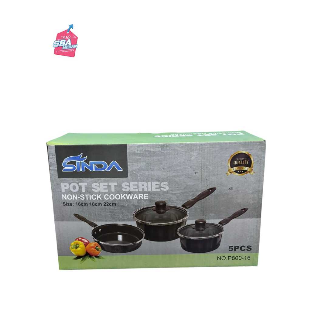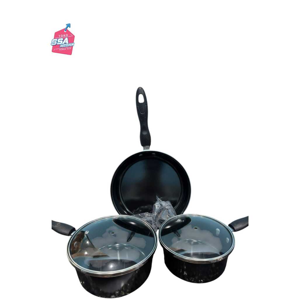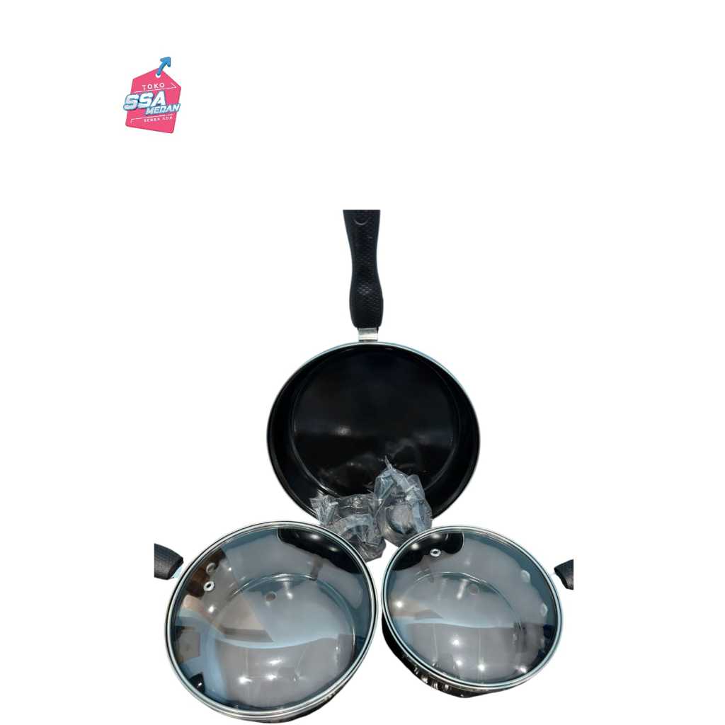 Panci Set 3 IN 1 Anti Lengket Panci Isi 2 Tutup Kaca Panci Set Pot Cookware Set 5Pcs (P800-16)