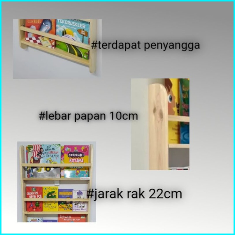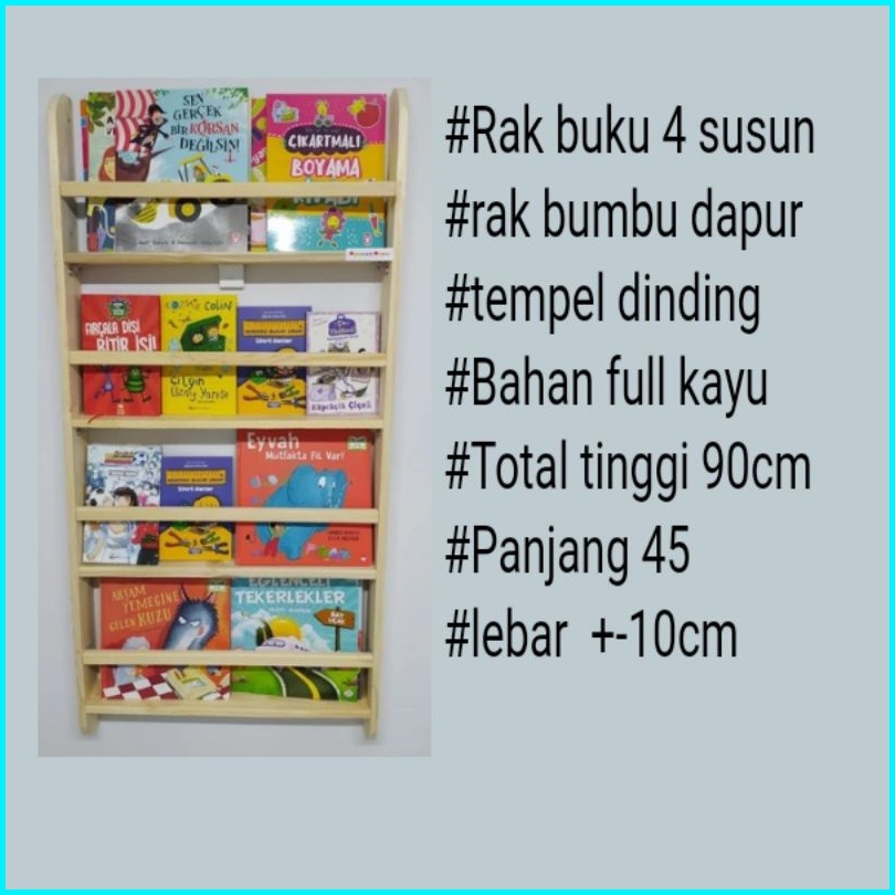 Rak Buku 4 Susun Tempel Dinding Bahan Kayu Solid