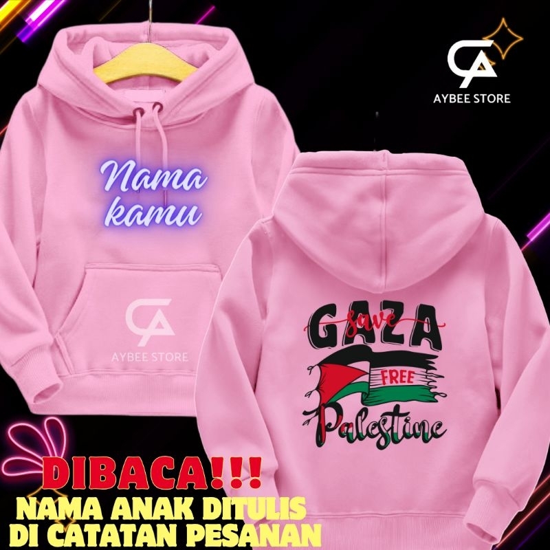 JAKET HOODIE SWEATER ANAK LAKI LAKI PEREMPUAN USIA 2,3,4,5,6,7,8,9,10,11,12,13 TAHUN KOSTUM NAMA+SAVE GAZA PALESTINE