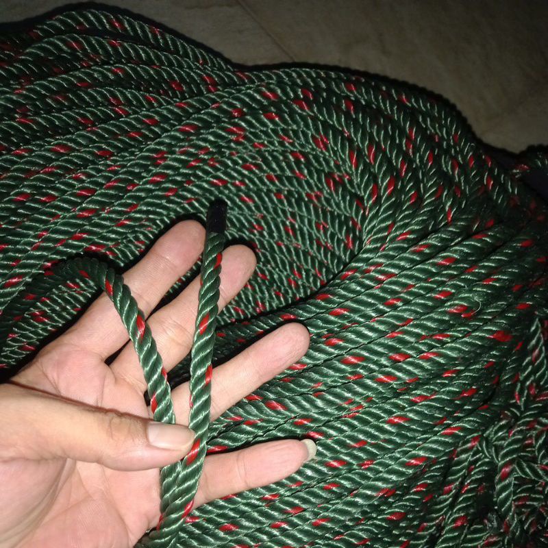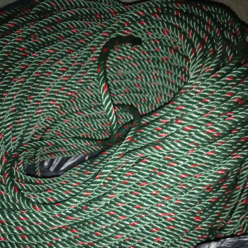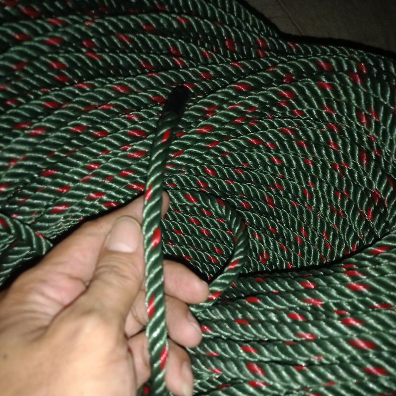 50 METER TALI TAMBANG UKURAN 8MM HIJAU BINTIK MERAH PLASTIK PE