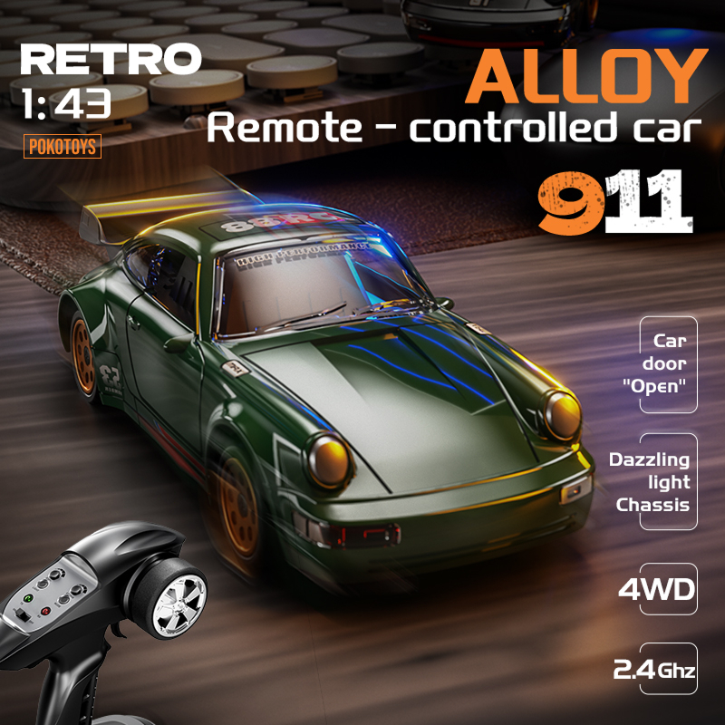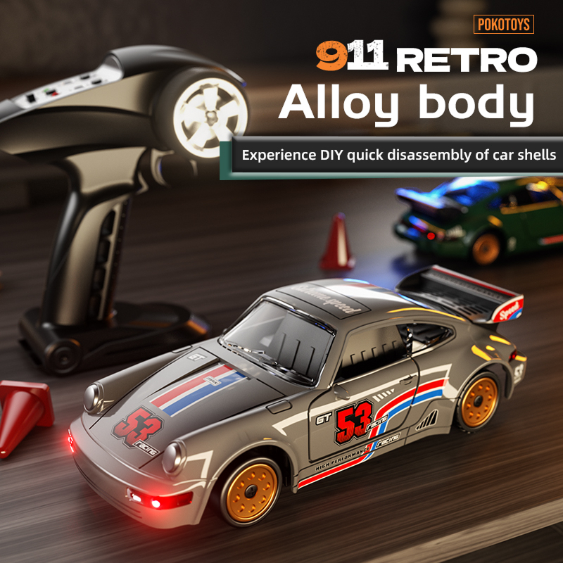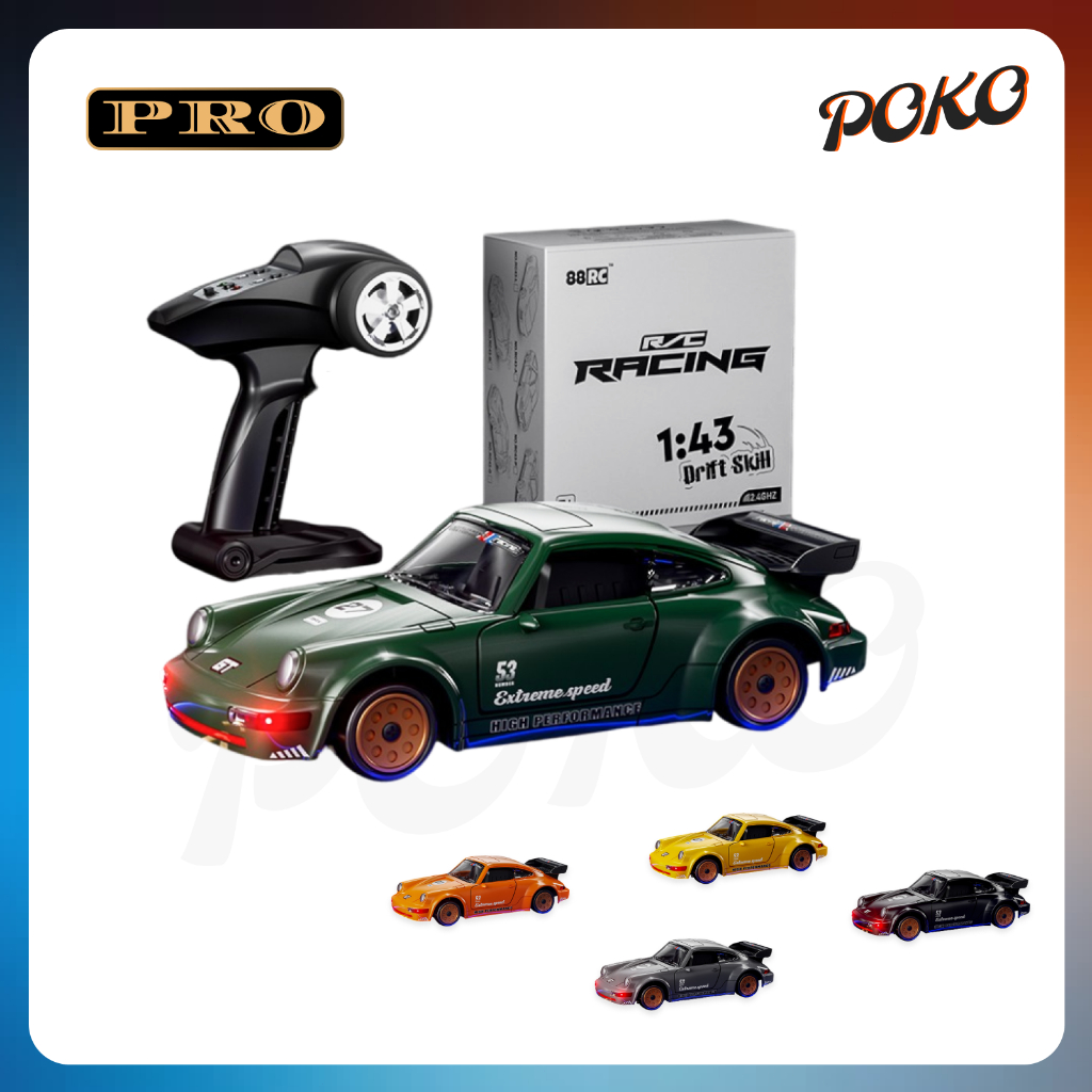 POKO 1:43 Mobil Drift 4WD Bearing Ganda+Gyro, Porsche 993 Alloy, Pintu Buka, USB-C Fast Charge, Drift Kuat, Profesional,