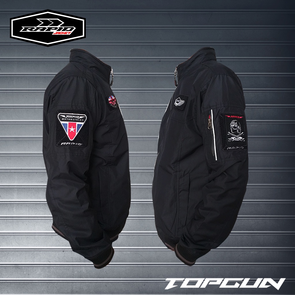 JAKET BOMBER PRIA ORIGINAL RAPID TOPGUN TERBARU UNIK DENGAN BADGE BORDIR YANG BISA DILEPAS PASANG JACKET MOTOR BOMBER KEREN