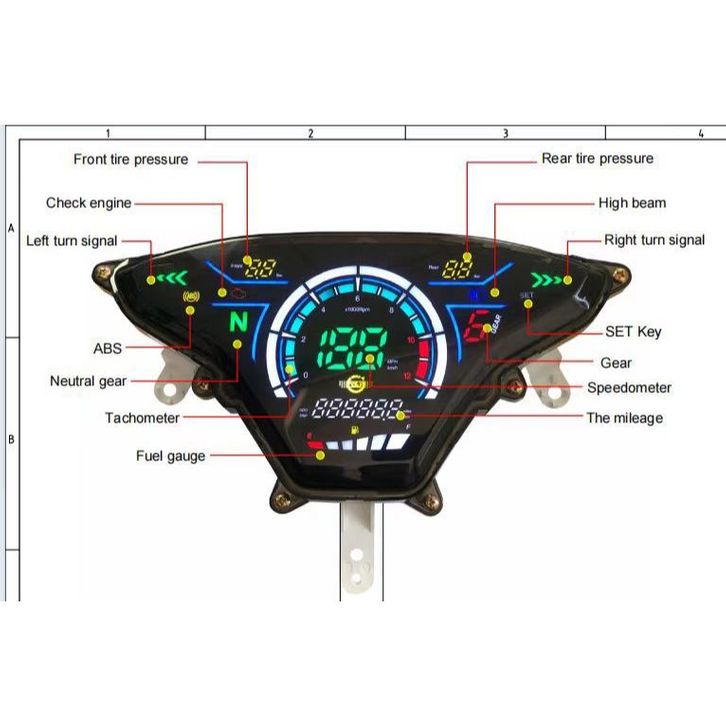 Speedo Digital AEROX 155 ABS Speedometer AEROX 155 Connected MOBIUS