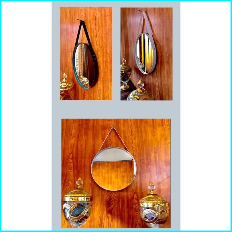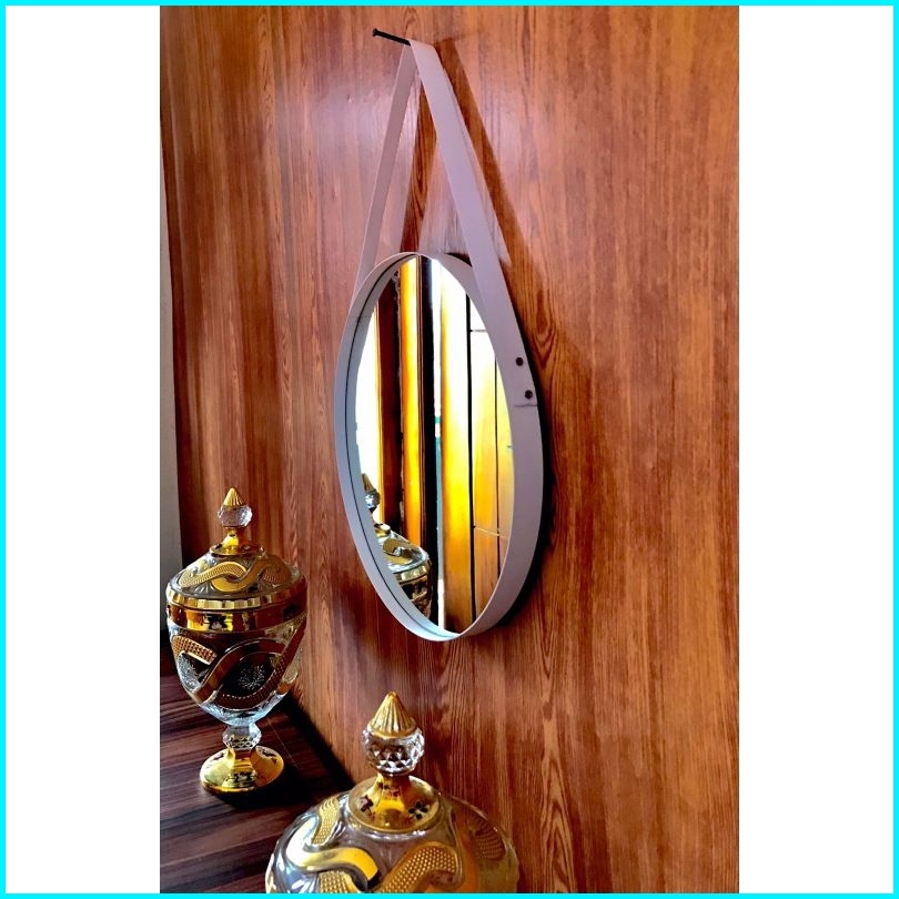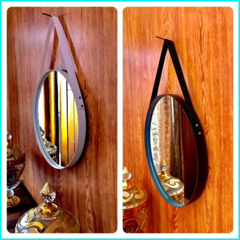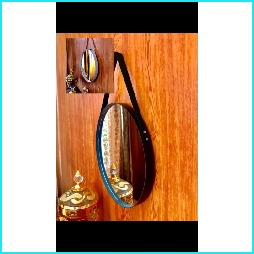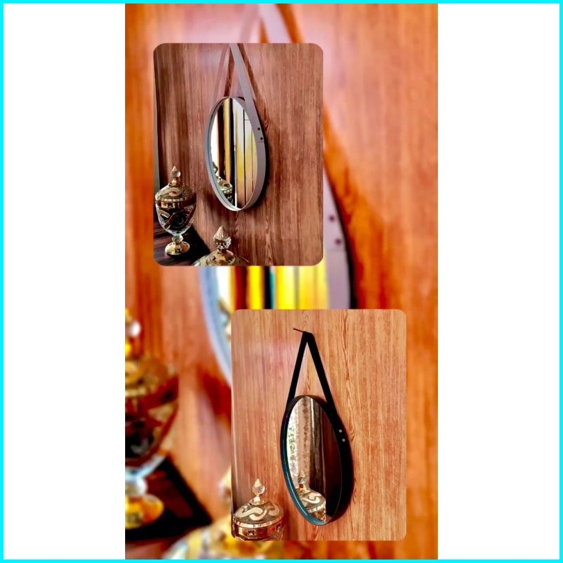 Free Packing Kayu Cermin Bulat Aesthetic - Kaca Cermin Gantung Tali