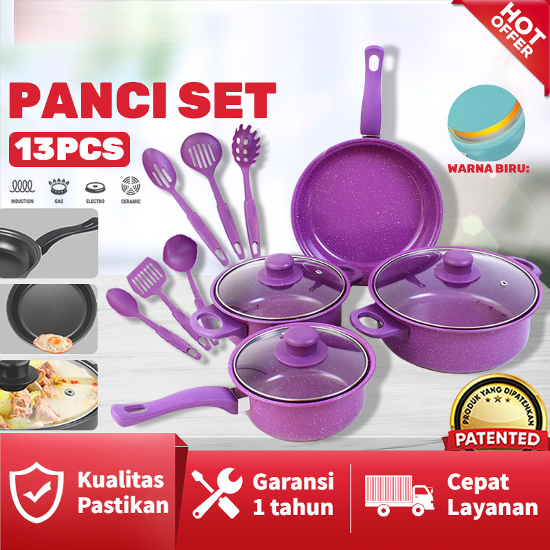 Cookware Panci Set 13 IN 1 Wajan Penggorengan Spatula Set Isi 13Pcs 1 Set Frypan Saucepan