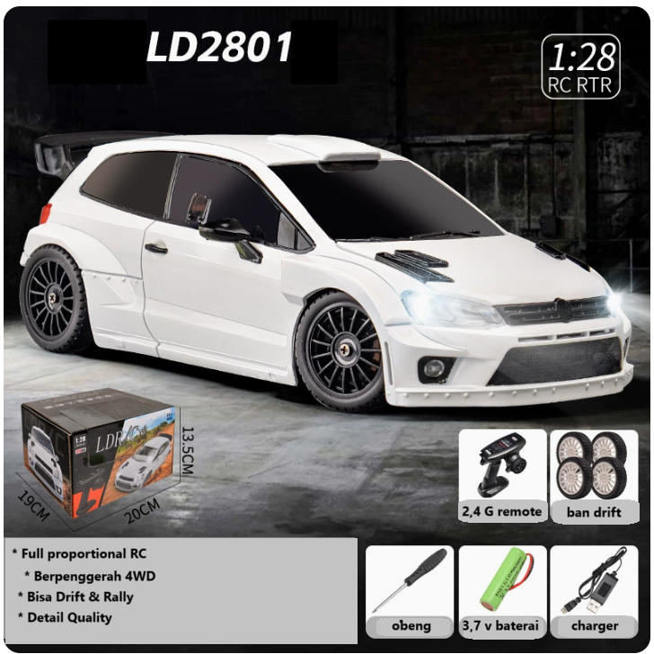 Mobil Mainan RC Drift Rally Landa LDR/C LD2801 LD2802 LD2803 LD2804 POLO LANCIA QUATTRO 206 skala 1:28 2.4G 4WD Full Pro