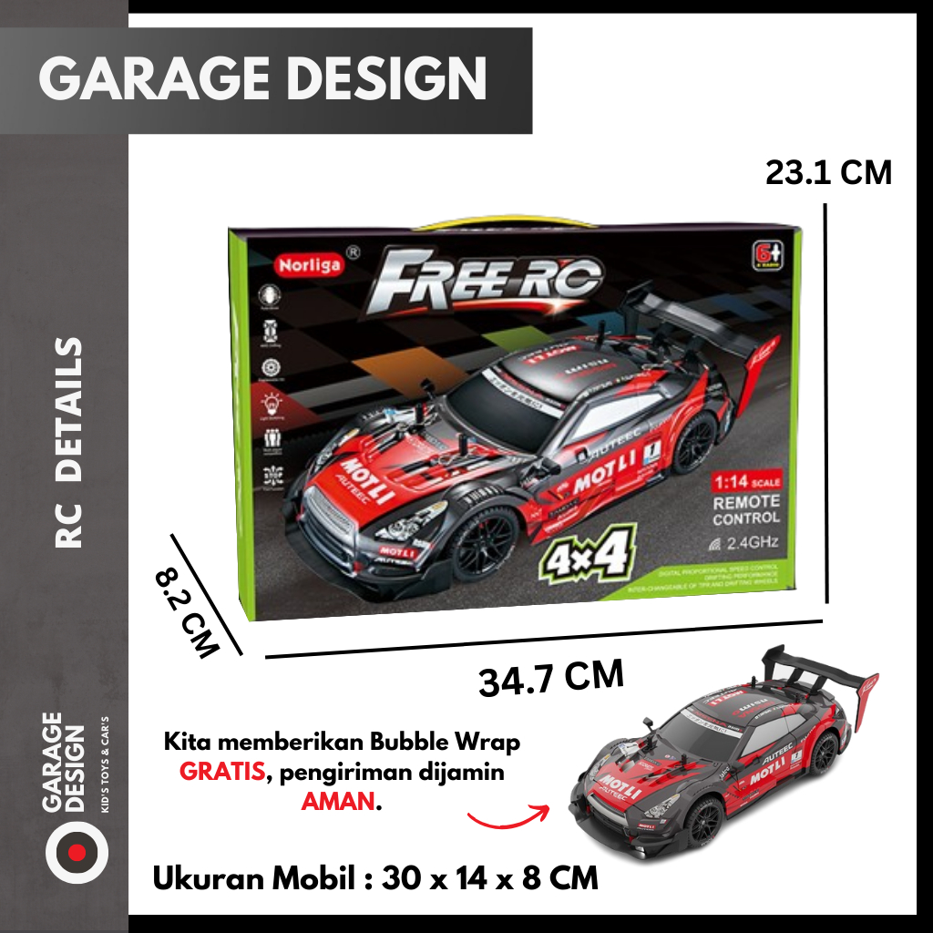 (TERDAPAT LAMPU) RC Drift 4WD Proportional Nissan GTR Nismo 1:14 - Remote Control Mobil Drift 1/14 2.4GHz Merah Terdapat