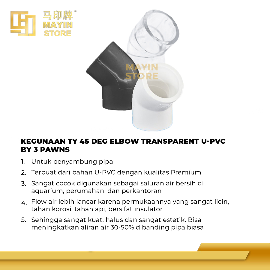 TY K04 Elbow Knee 45 Degree / Keni Pipa Pipe U-PVC Filter Filtrasi Akuarium Aquarium