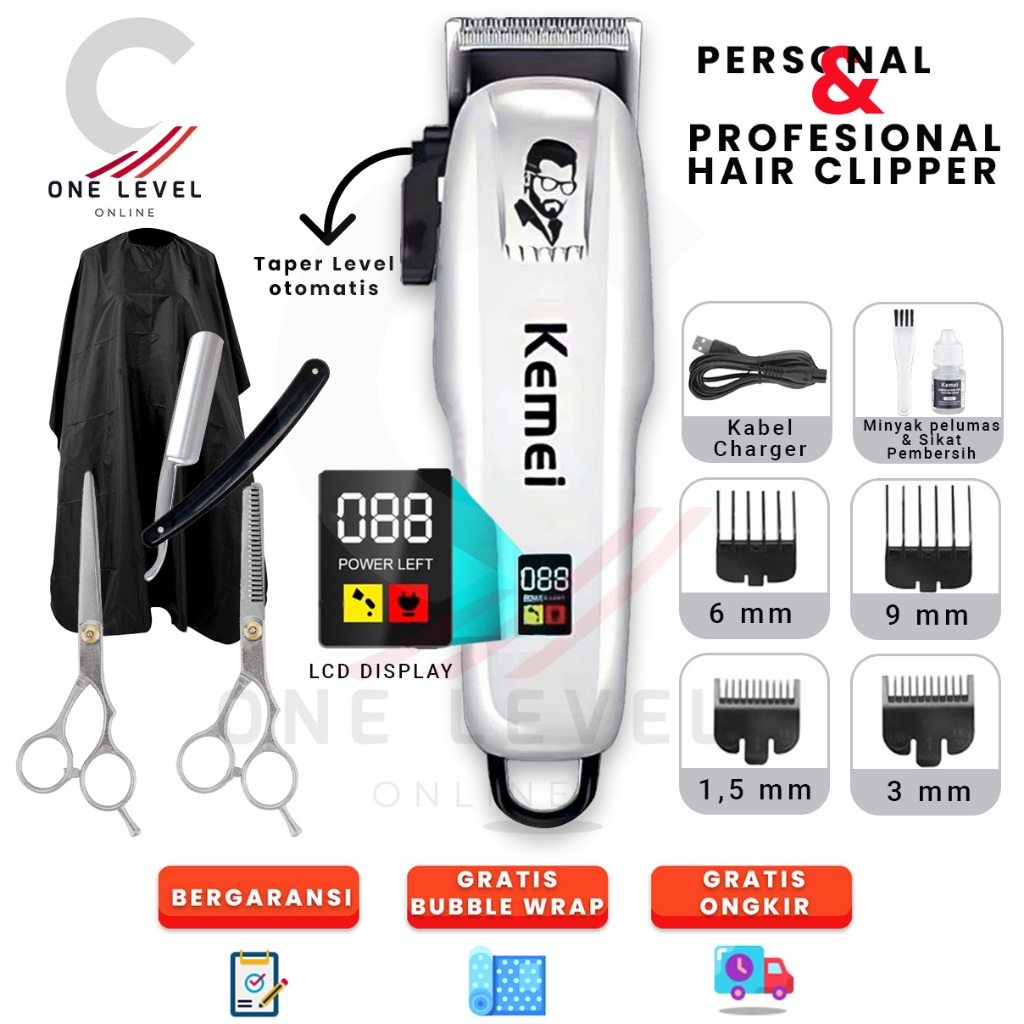 ALAT MESIN CUKUR RAMBUT ELEKTRIK CAS KEMEI ORIGINAL PAKET BARBERSHOP HAIR CLIPPER INDIKATOR BATERAI DIGITAL PENCUKUR PANGKAS POTONG RAMBUT TANPA KABEL