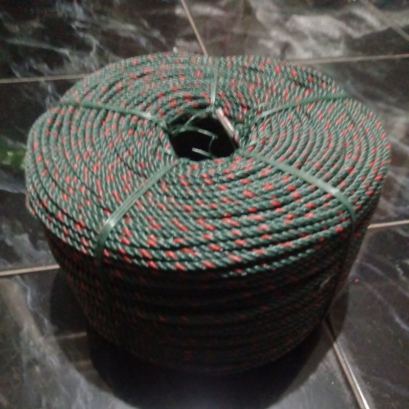 1 ROLL TALI TAMBANG UKURAN 3MM -+200METER HIJAU BINTIK MERAH PLASTIK PE