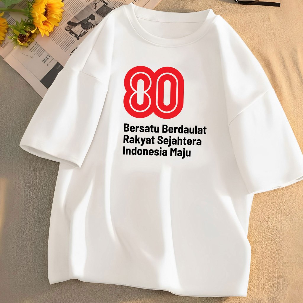 LN Baju Kaos Pria Wanita Dewasa 17 Agustusan HUT RI 80 Kemerdekaan Dirgahayu Republik Indonesia Kaos Merah Putih Lengan Pendek