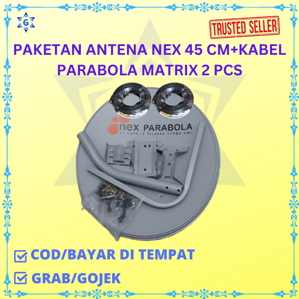 PAKETAN ANTENA PARABOLA NEX ABU 45 CMHANYA ANTENA SAJA+KABEL PARABOLA MATRIX 2 PCS