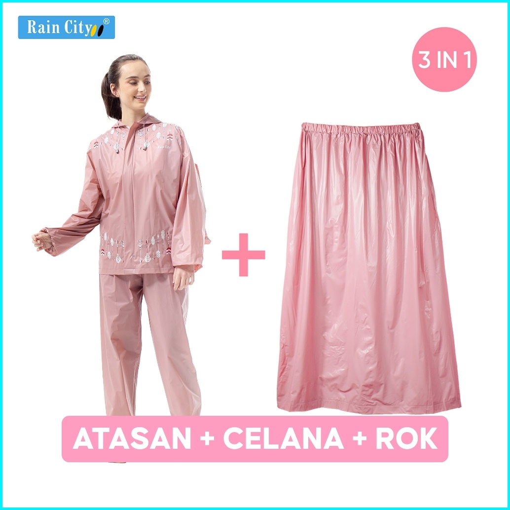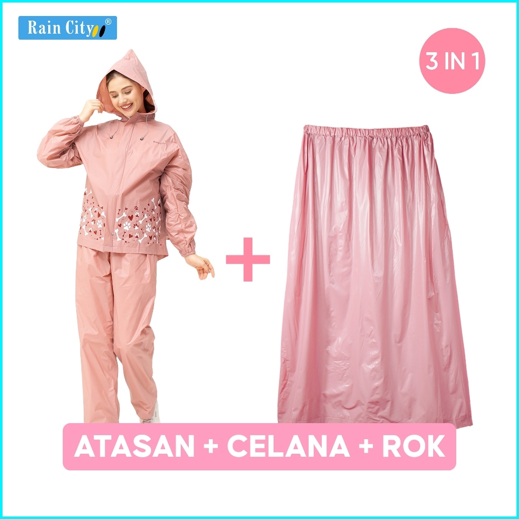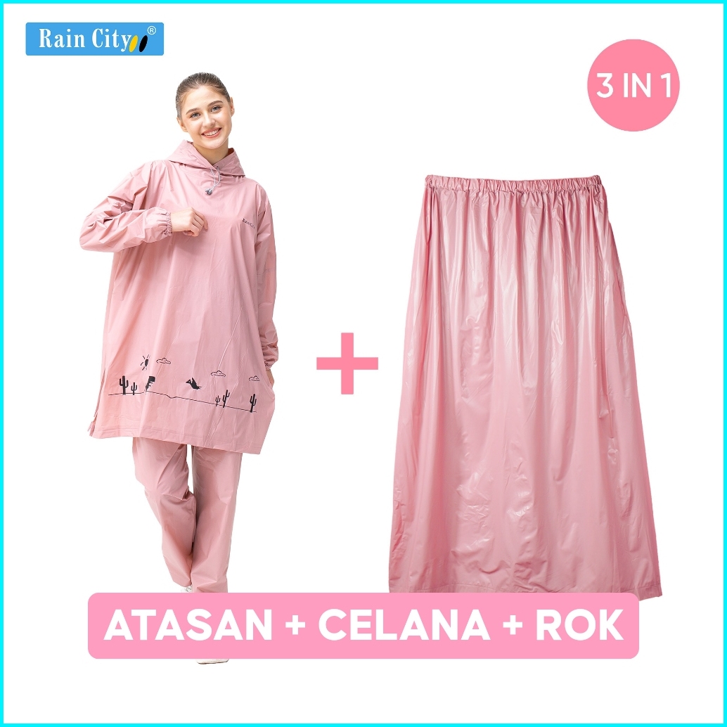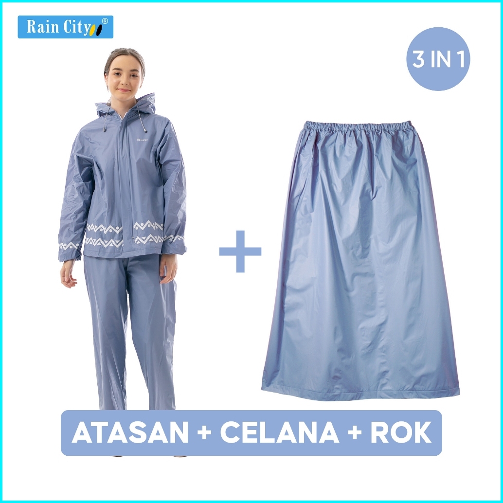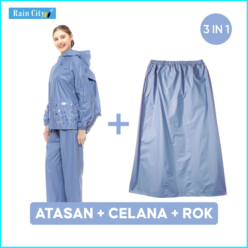 Paket 3 In 1 Jas Hujan Setelan Rok - Rain City