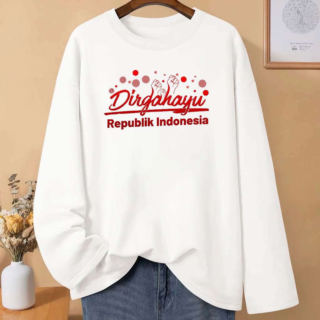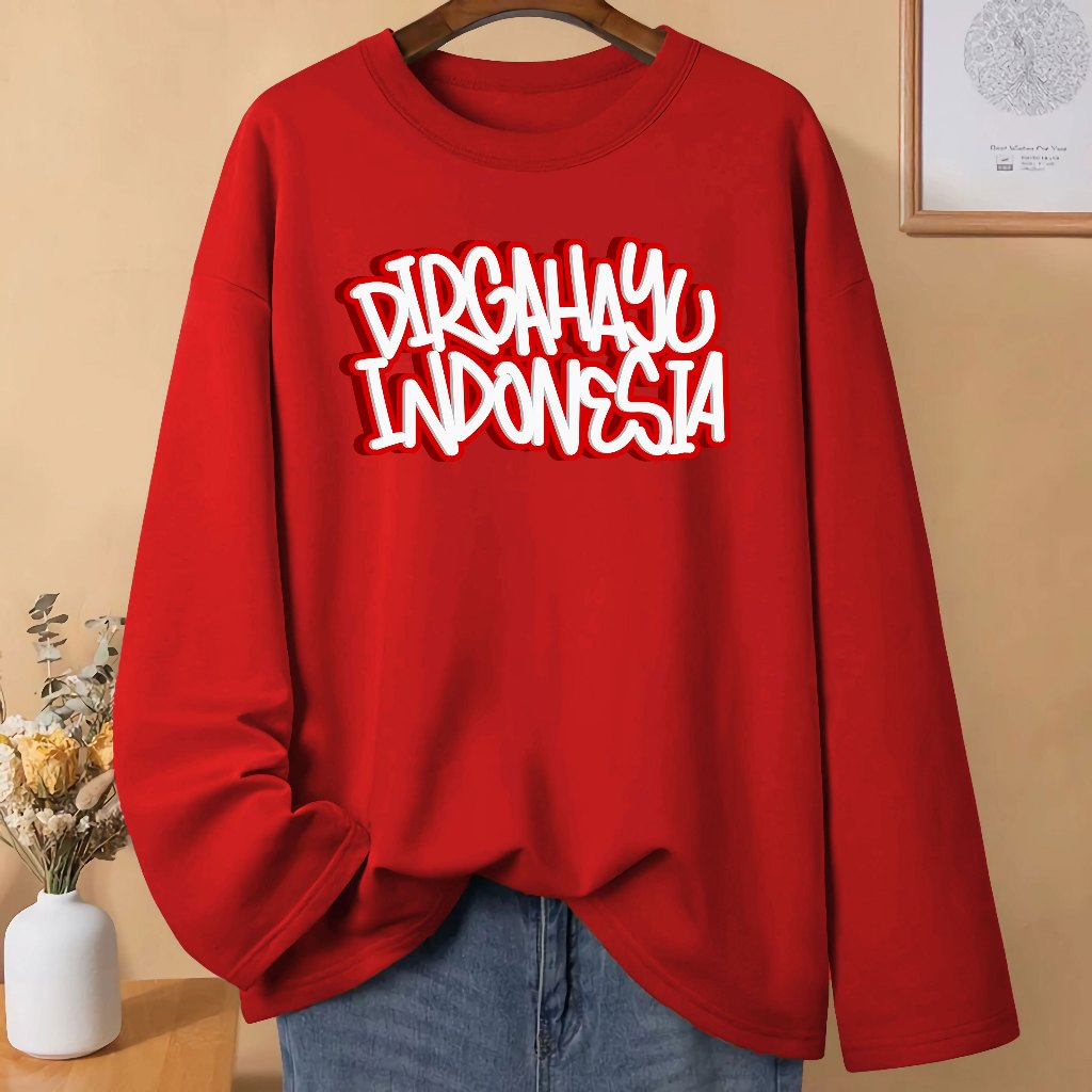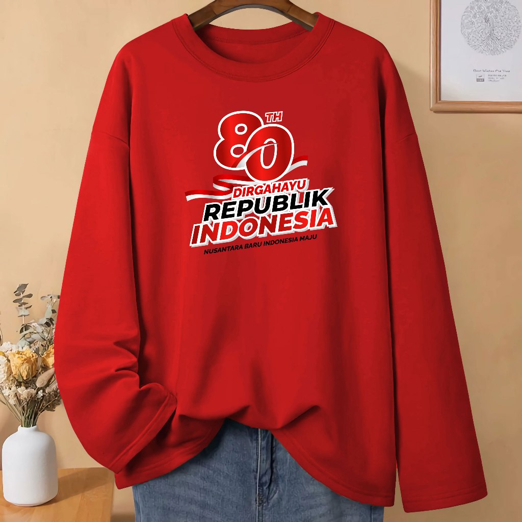 Baju Kaos Pria Wanita Dewasa 17 Agustus HUT RI 80 Kemerdekaan Dirgahayu Republik Indonesia Kaos Merah Putih Lengan Panjang