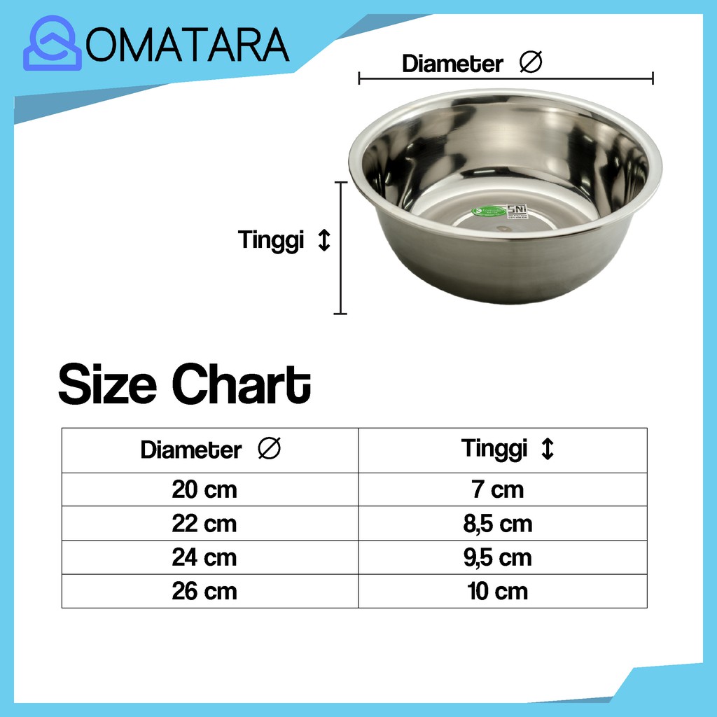 BASKOM UMUM STAINLESS STEEL MERK KOO UKURAN 20 , 22 , 24 , 26 CM