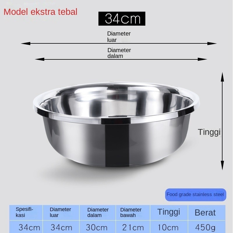 SHINYSTEEL Baskom Stainless Steel Bulat Anti Karat Tebal Wadah Cuci Makanan Serbaa 578