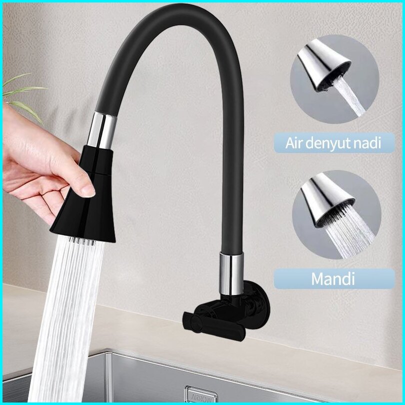 Sus 304 Stainless Kran Serbaguna Kran Angsa Cuci Piring Dapur Fleksibel Multi Fungsi Model Pasang Tembok Tancap Kran