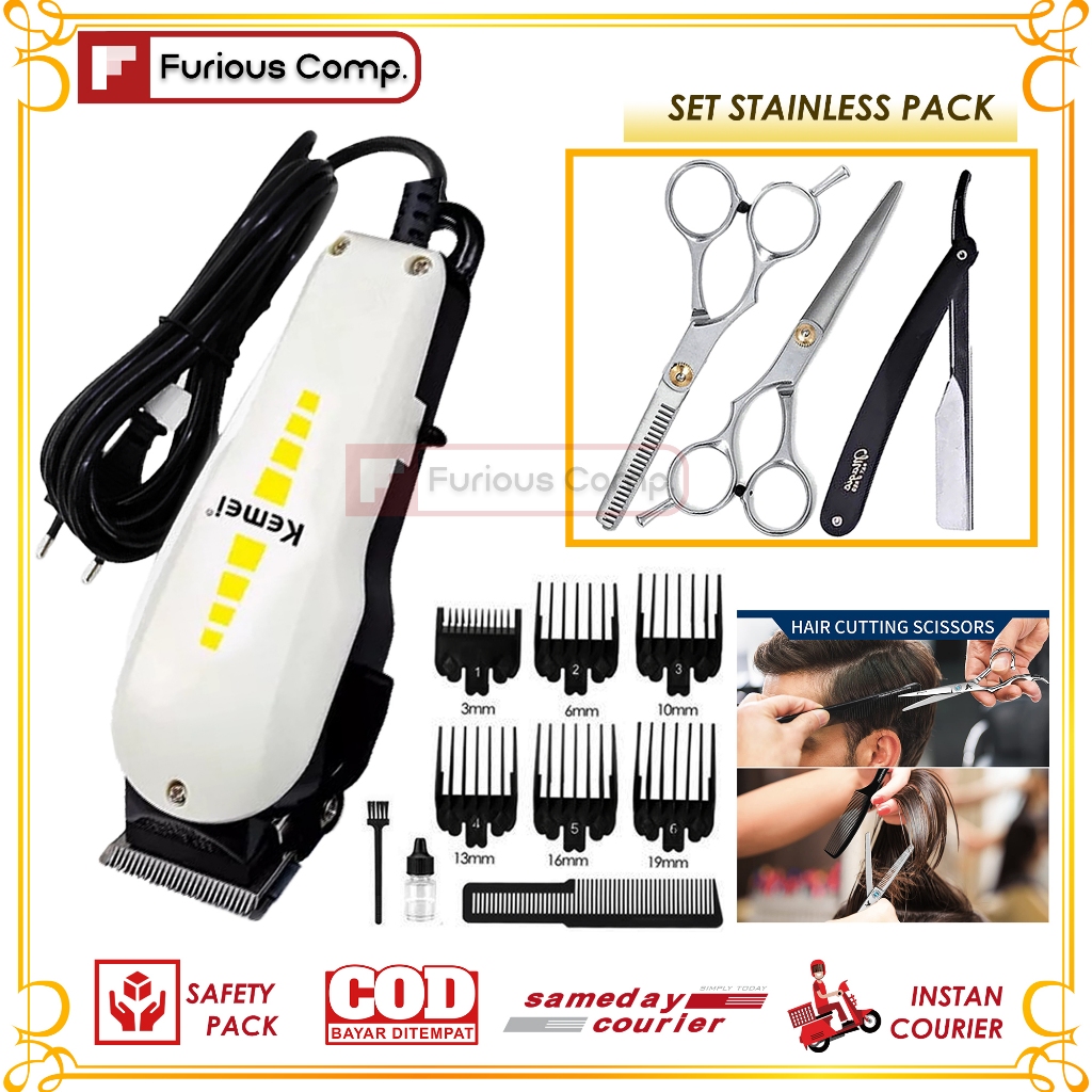 KEMEI CUKUR RAMBUT LENGKAP ALAT PANGKAS CUKUR RAMBUT ELEKTRIK PROFESSIONAL BARBERSHOP DENGAN KABEL