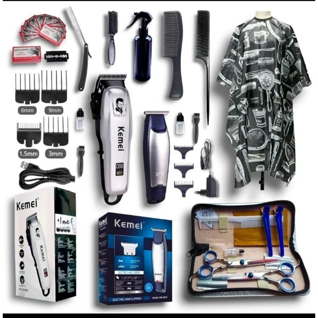 PAKET ALAT CUKUR RAMBUT ELEKTRIK TRIMMER CLIPPER PROFESIONAL BARBERSHOP GUNTING RAMBUT GUNTING SASAK SET POTONG RAMBUT LENGKAP SALON BARBERSHOP PROFESIONAL KIREI BEAUTY OFFICIAL