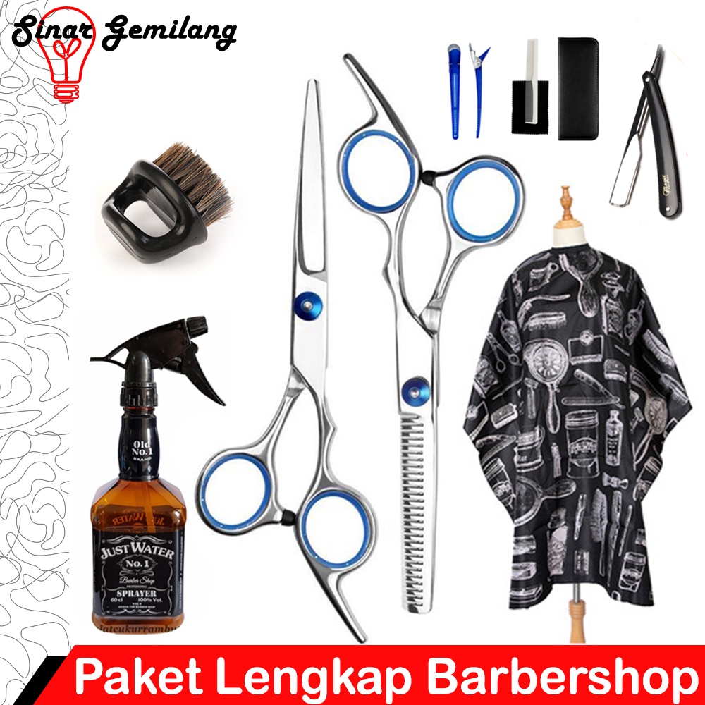 PAKET LENGKAP ALAT CUKUR RAMBUT BARBERSHOP , GUNTING SASAK, GUNTING LURUS, JEPITAN, SISIR, MINYAK, BOTOL SPRAY, KAIN CAPE, FADE BRUSH BARBERSHOP
