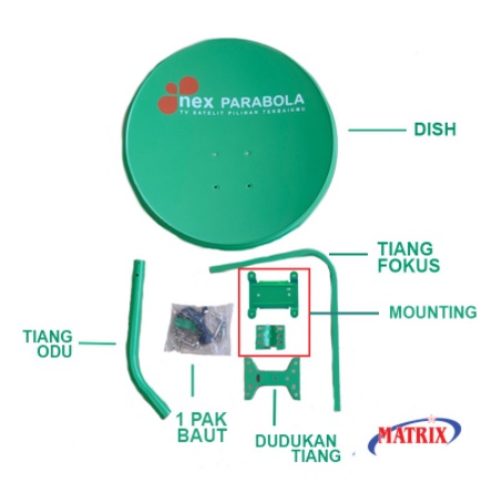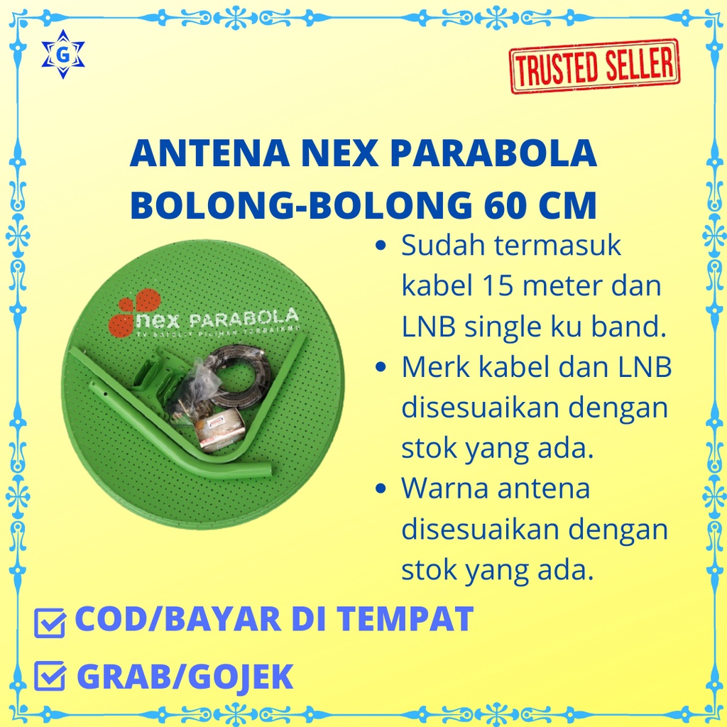 ANTENA NEX PARABOLA 60 CM ABU2/HIJAU SOLID/LUBANG TERMASUK LNB DAN KABEL