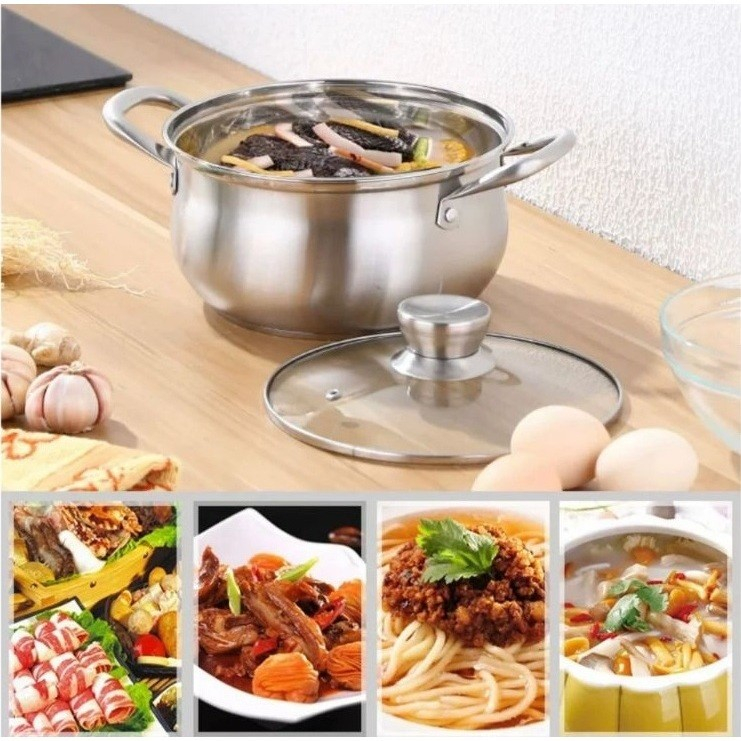 BMW Original Stainless Panci Soup Labu isi 3 Pcs Tutup Kaca Pumpkin Panci Rebus Set 3 Pcs Ukuran