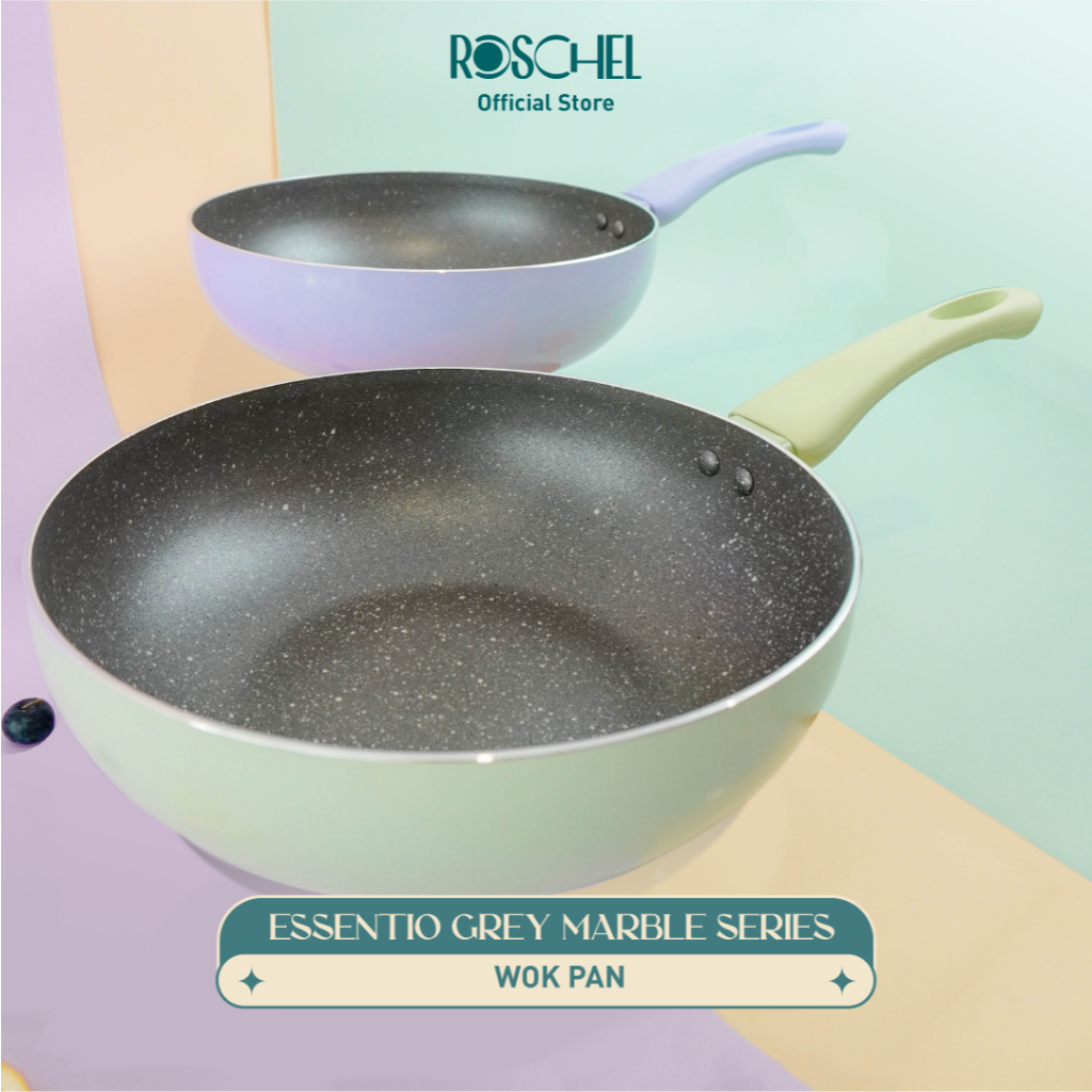 Roschel Essentio Marble Non-Stick Wok Pan 20, 24 , 26 , 28 cm Panci Wajan Penggorengan Kuali Anti Lengket