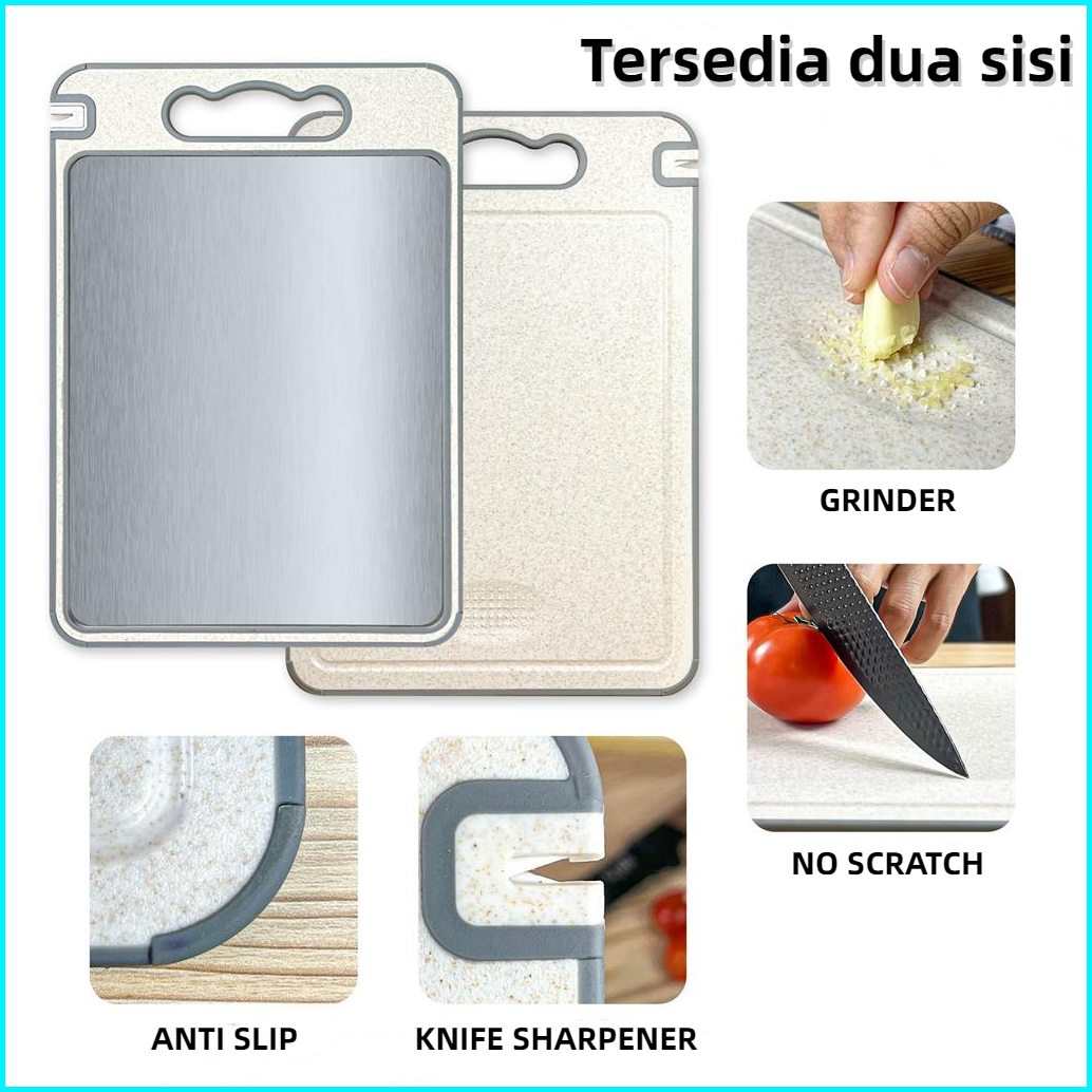 Talenan Stainless Steel 304 Dua Sisi Double Side Chopping Board Multifungsi Talenan Stainless 2 Sisi Alas Potong Double