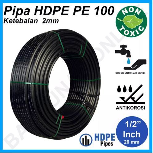 Pipa HDPE 1/2 inch 20mm Hitam Rol 50m