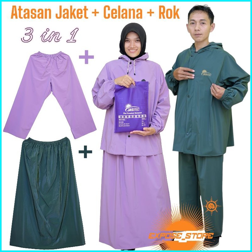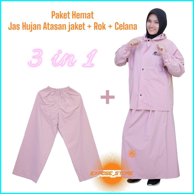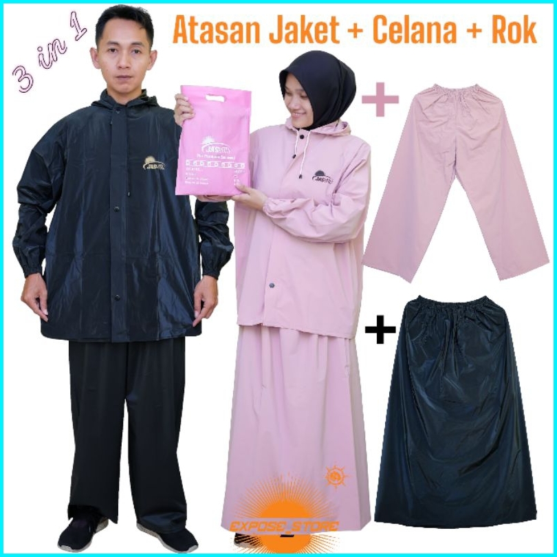 Jas Hujan Setelan Atasan Baju Celana Rok Bahan Pvc Waterproof Kuat Lentur Dan Anti Rembes