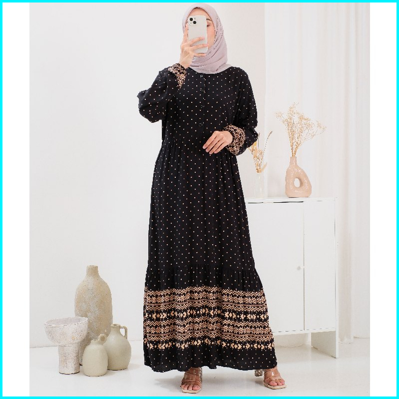 Nadira Gamis Rayon Motif Terbaru Dress Wanita Muslim Kekinian