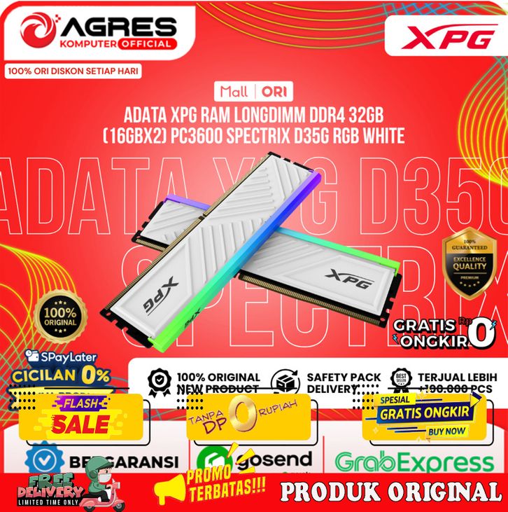 ADATA XPG RAM LONGDIMM DDR4 32GB (16GBX2) 3600MHZ SPECTRIX D35G RGB WHITE / BLACK