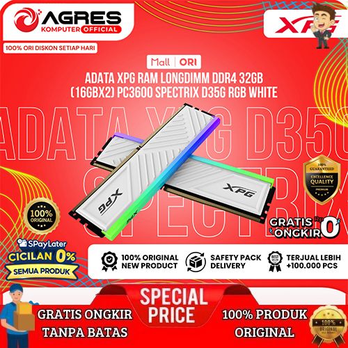 [Mall] ADATA XPG RAM LONGDIMM DDR4 32GB (16GBX2) 3600MHZ SPECTRIX D35G RGB WHITE / BLACK