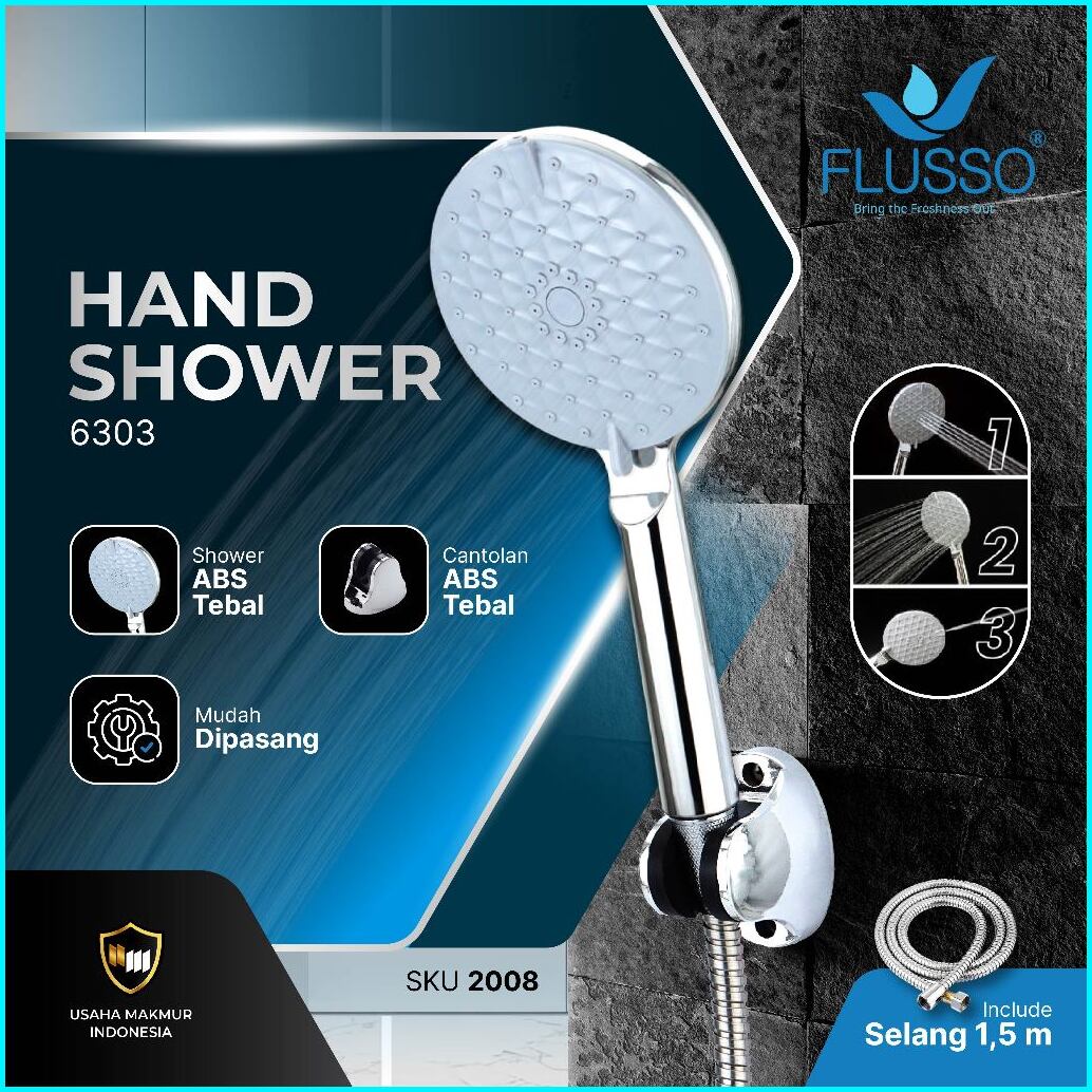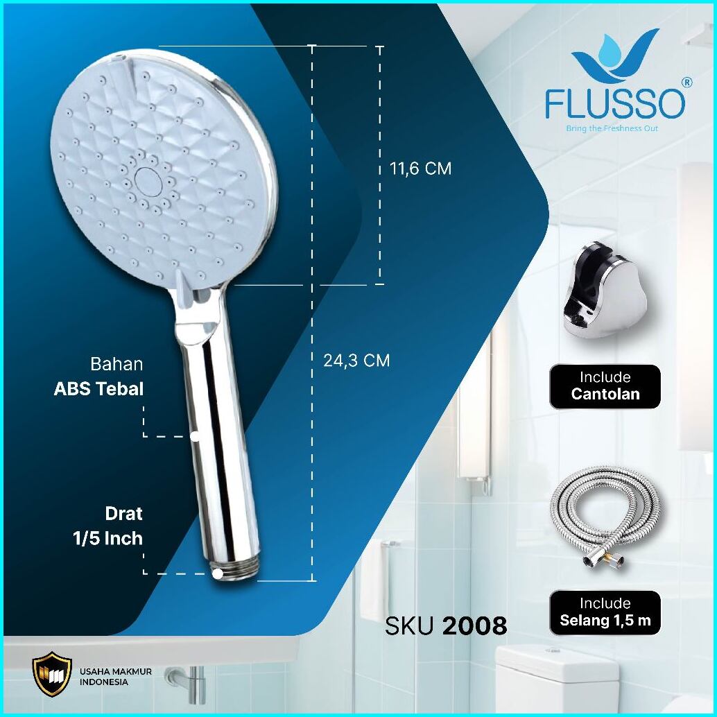 Flusso Shower Mandi Selang Cantolan Kepala Shower Mandi 3 Mode Komplit Termurah 2008