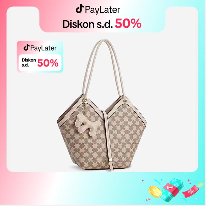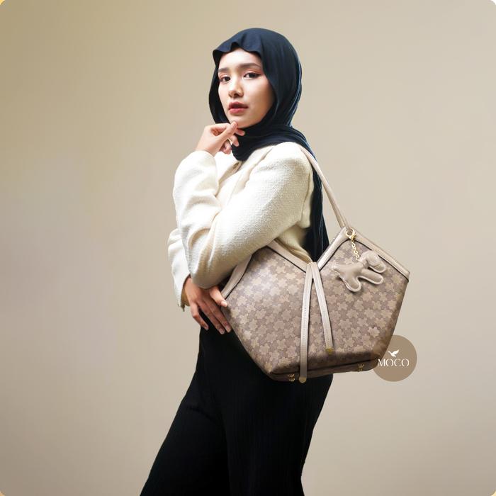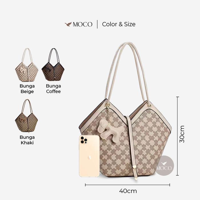 MOCO Fashion Tas Totebag Floral Wanita Elegan Kuliah Kerja Bonus Bag Charm 1610 - M Khaki