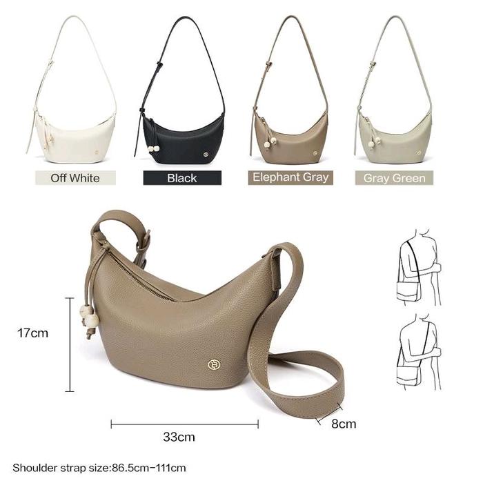 Bostanten Rora Bag Slingbag Selempang Handbag PU Leather Fashion Wanita New Underarm Bag 2025 - Black