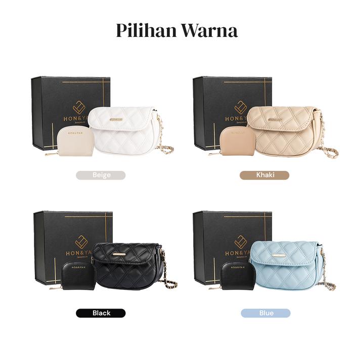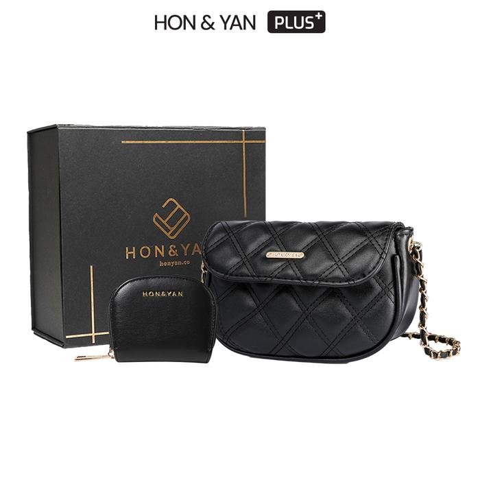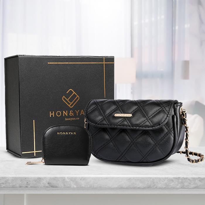 HONYAN PLUS Tas Wanita Tas Selempang Wanita Slingbag Wanita Gift Set 2 In 1 Premium - Shasha Gift Set - Black