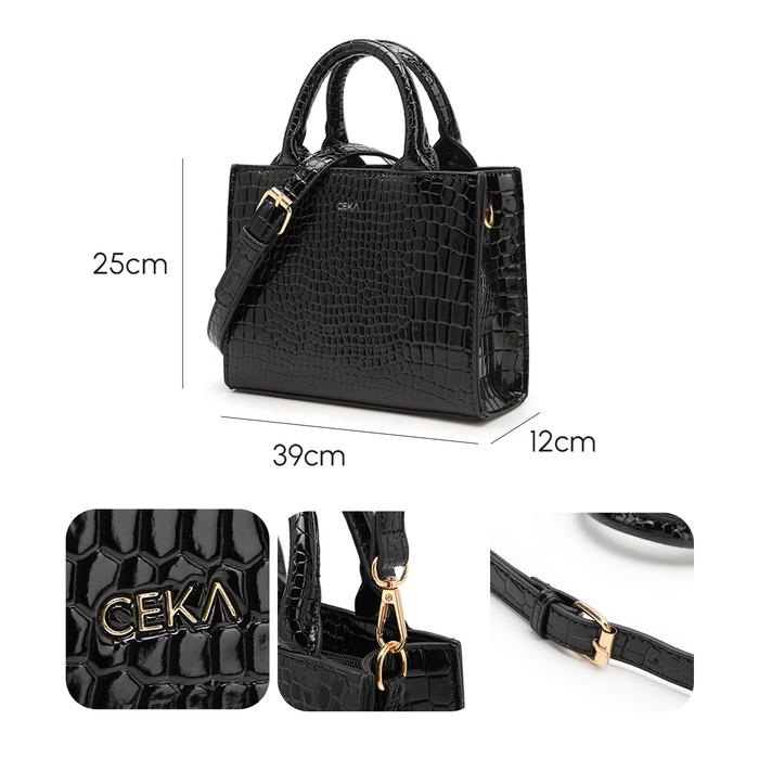 CEKA Tas Selempang Wanita Kulit Croco Slingbag Handbag Sling Bag Vintage - Linan - Black Dustbag