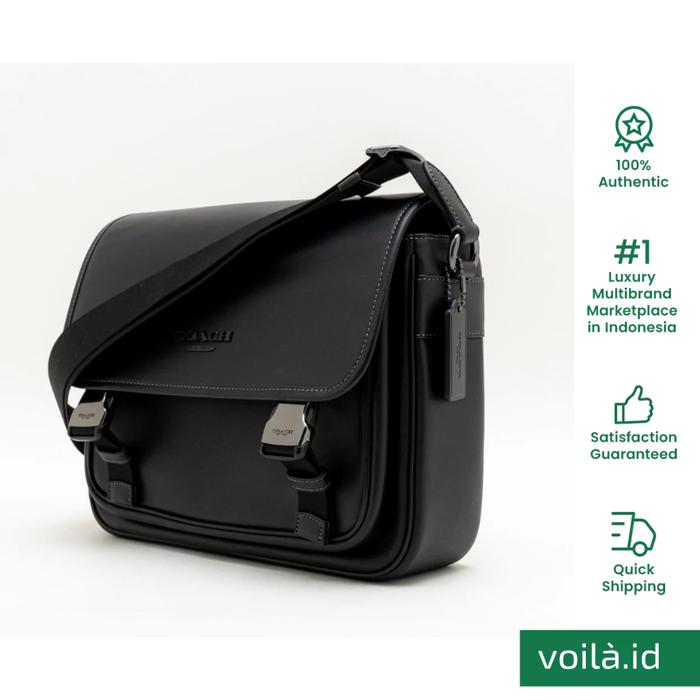 Voilaid Coach Racer Messenger Bag Smooth Calf Leather Black - Black