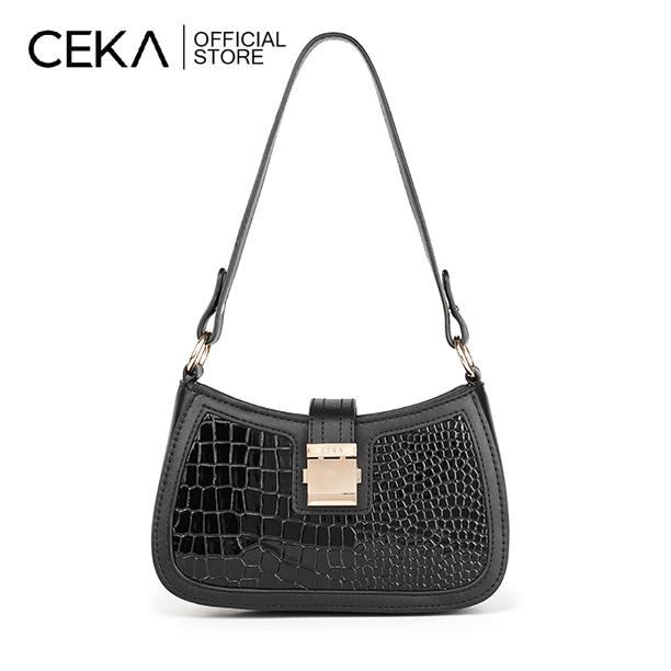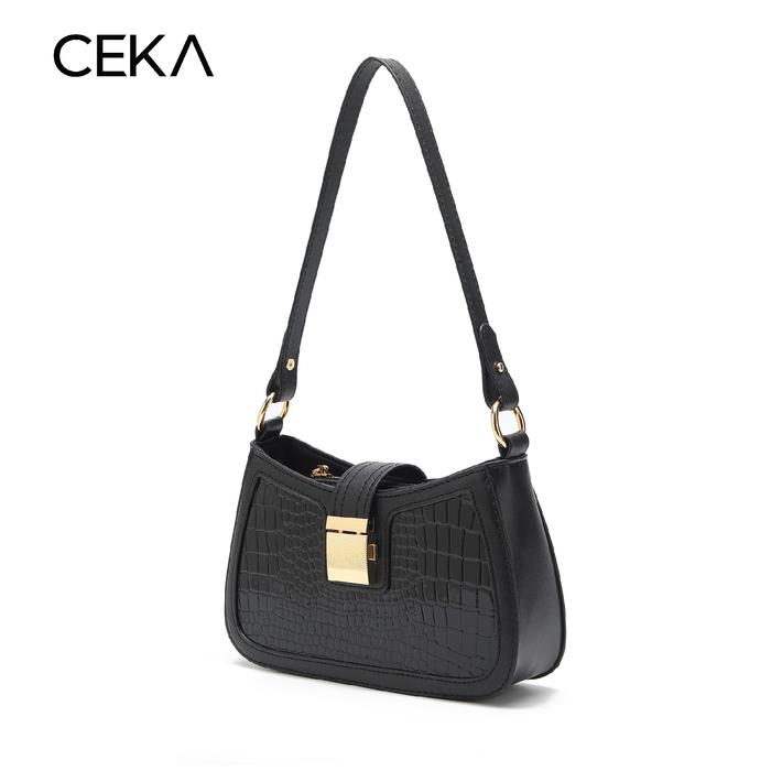CEKA Tas Wanita Shoulder Bag Tas Underarm Bag Shoulder Bag Bahu Kulit Croco Hitam - Laila Handbag - Black Dustbag