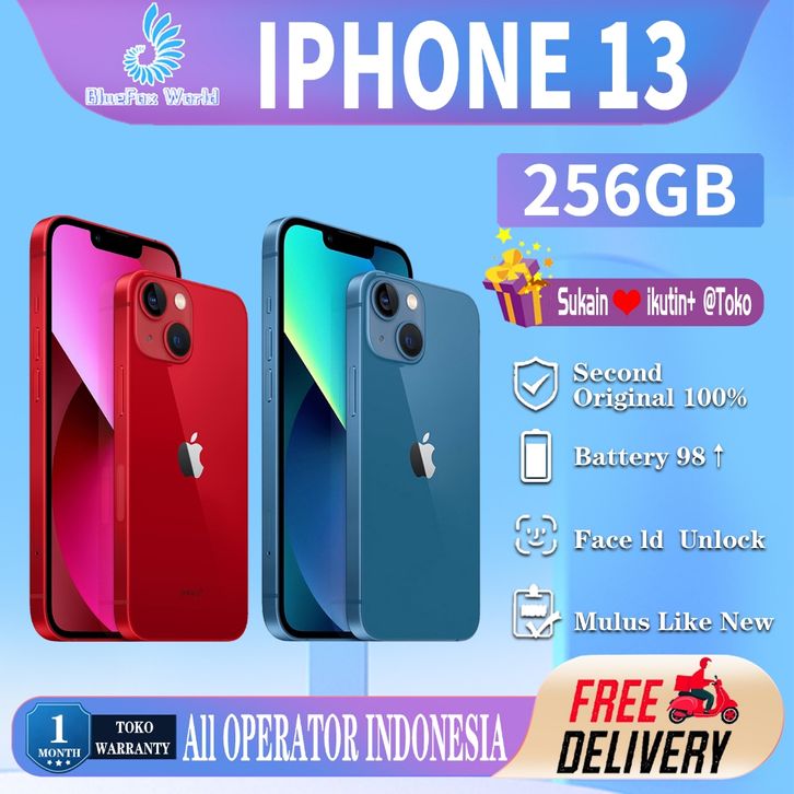 Promo iPhone 13 256GB Second/Bekas Original100 6.1"OLED-Ori Fullset Mulus LikeNew Phone 3utools All9reen Elegan