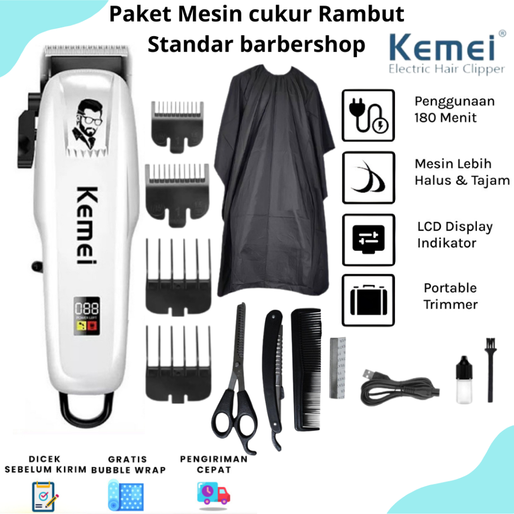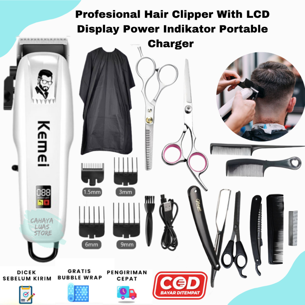 CL MESIN CUKUR RAMBUT CAS PROFESIONAL PAKET BARBERSHOP KEMEI INDIKATOR BATERAI LED DIGITAL ORIGINAL